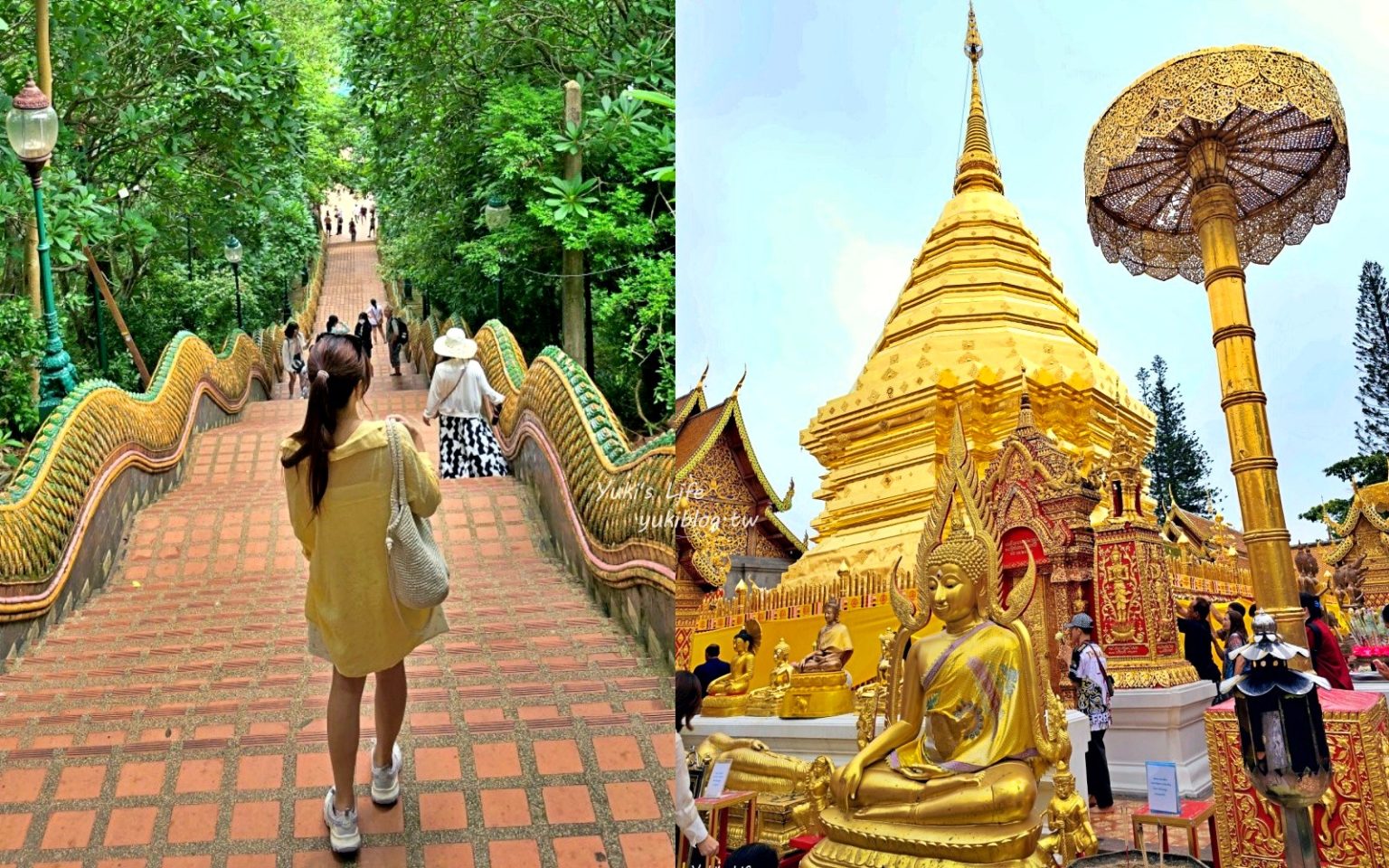清邁最知名的寺廟「雙龍寺」是必去的景點,這裡的香火超鼎盛,不只是外國遊客多,本地人來拜拜的也超多,在雙龍寺可以看到金光閃閃的佛塔、氣勢非凡的雙龍雕像,還能體驗搭乘纜車上山,悠閒地散步下山,再殺價買個包包,自由行的人可參加kkday行程,有導遊跟接駁車