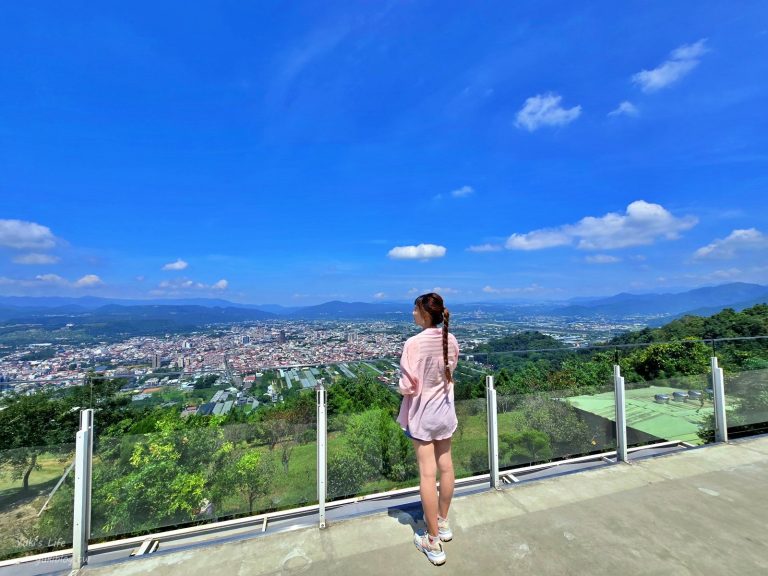 虎嘯山嵐因為地勢較高,剛好能將整個埔里盆地盡收眼底!從照片就能感受到,這裡的視野有多遼闊!不論是下方的埔里市區、周圍的群山,甚至連遠方的中台禪寺都看得一清二楚,景色真的非常壯觀