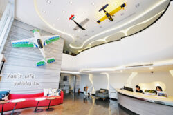 挑高的大廳有飛機掛在裡面