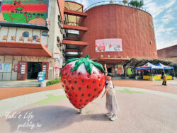 我們也有跟門口廣場上的巨型草莓拍照哦!