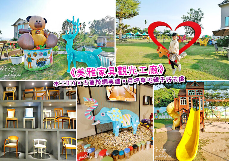 台南親子景點【美雅家具觀光工廠】木工DIY×百坪大草皮、沙坑玩耍趣×古董椅網美牆