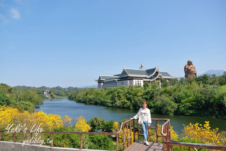 湖畔遠眺彌勒佛×黃花風鈴木拍照點在這裡!湖畔季節限定美景~