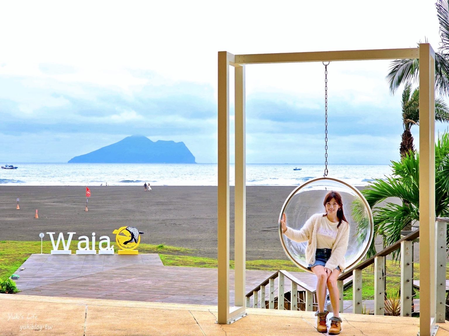 宜蘭親子景點【九號咖啡外澳館】龜山島海景下午茶.透明水晶鞦韆.玩沙賞夕陽.好停車!