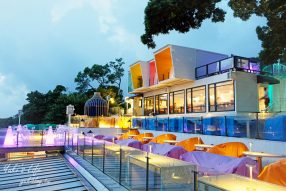 全新草山夜未眠最具有特色的就是這面的景,階梯式的露天座位,加上背後的彩色房子與玻璃屋,還有精緻的鳥籠造型亭,整個就很有異國風情