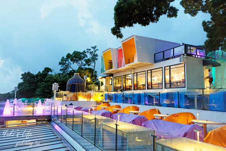 好喜歡草山夜未眠這個彩色框框設計的餐廳主建築,上方是需要訂位的包廂房,有冷氣和專屬的露台