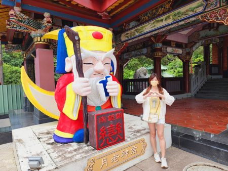 走到南鯤鯓代天府的尾端,我們遇見了月老神君,這個Q版的月老超級可愛,我也比個愛心一起可愛一下