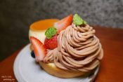 這次吃到的閑閑布丁蛋糕捲,是「栗子莓果布丁蛋糕捲」, 栗子泥擠成小山,眼看就快要山崩了,這畫面好療癒啊~