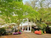 一片翠綠中靜靜佇立著一棟白色房子,那兒就是桃李河畔森林景觀餐廳