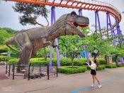 刺激的雲霄飛車,可從恐龍的頭頂旁邊快速經過喔