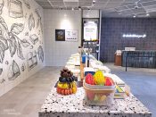 整面牆上色彩繽紛的一顆顆小球,是福爾摩莎可可農場推出的水果頑石,它是水果軟糖裹上巧克力的糖球,外表實在太吸引人,口味選擇也很豐富,小朋友看到都會吵著要買