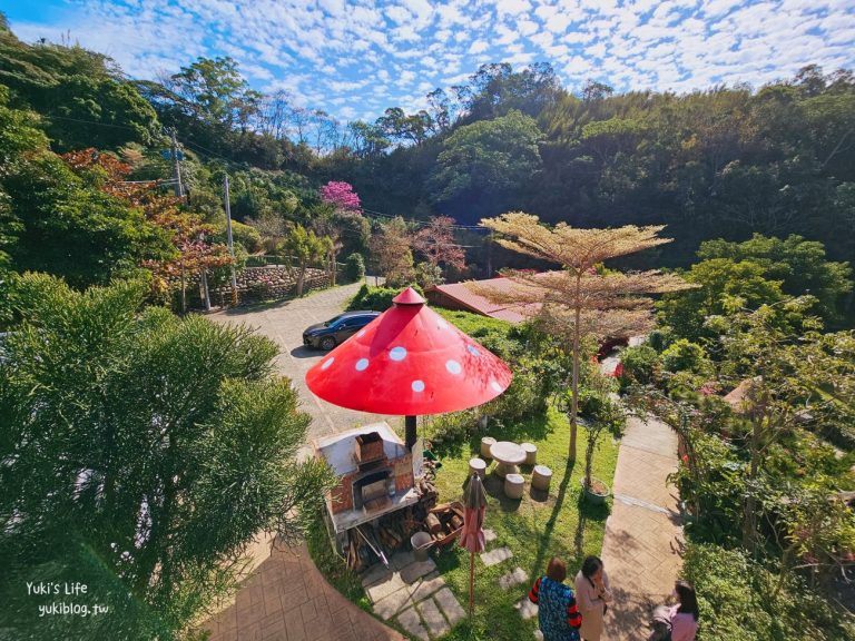 童趣古錐的大紅蘑菇好搶眼呀!它的底下是柴燒披薩爐