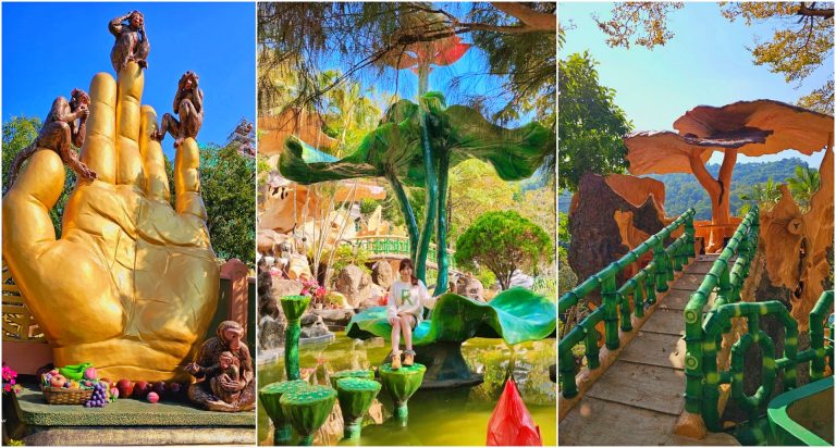 曾幻想過自己化身拇指姑娘嗎?來到台南南化這景點可以實現夢想!玉山寶光聖堂是台南花旗木花海的熱門拍點,每到花期時整個園區呈現爆炸的桃紅花海,非常的浪漫,吸引不少人前來拍照~~而玉山寶光聖堂裡面的造景也巨大又浮誇,像是蓮花涼亭、蓮蓬跳石、靈芝涼亭、巨大地球,超現實的存在令人驚嘆~